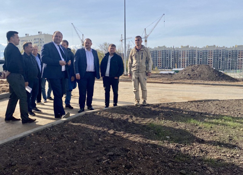 Министр строительства, архитектуры и ЖКХ Чувашской Республики Михаил Коледа и глава администрации Чебоксар Денис Спирин проинспектировали ход работ на объекте строительства школы на 1650 мест в микрорайоне "Садовый".