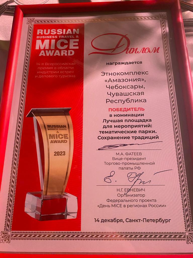 Этнокомплекс "Амазония" - обладатель премии Russian Business Travel & MICE Award
