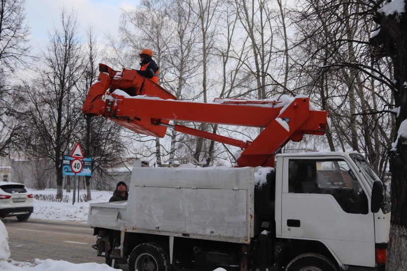 На сегодняшний день начаты работы по ул. Коммунистическая, которая является одним из сложных участков. Здесь в рамках обслуживания объекта проводятся работы по замене алюминиевых проводов на СИП (самоизолированные провода), параллельно осуществляют обрезку деревьев и меняют лампы. Подрядная организация - ООО "Вереск", с которым заключен краткосрочный договор на обслуживание до определения основного подрядчика.