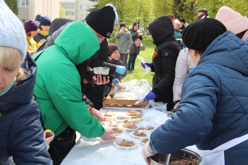 Далее ветераны города отправились на "Солдатский привал", где для них уже была развернута "Полевая кухня" и организован концерт. За солдатской кашей фронтовики и тыловики вспоминали военные годы, как работали и трудились в тылу, как поднимали страну и народное хозяйство.