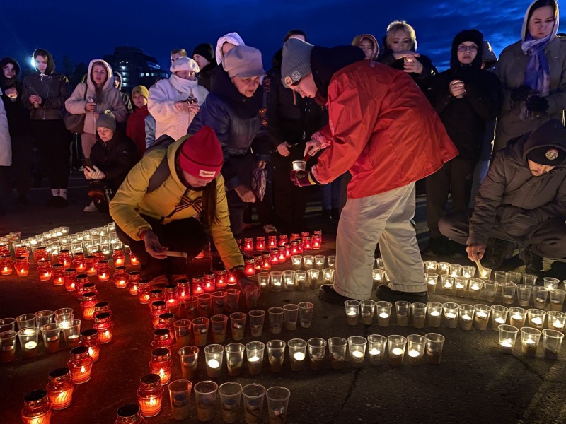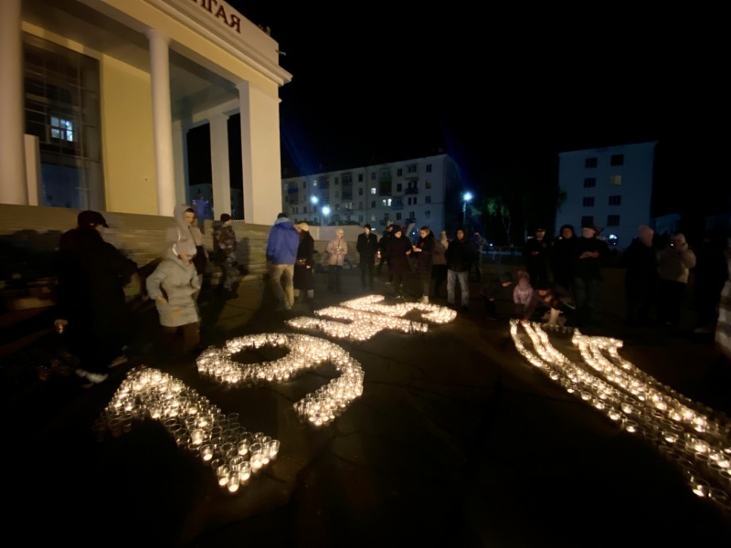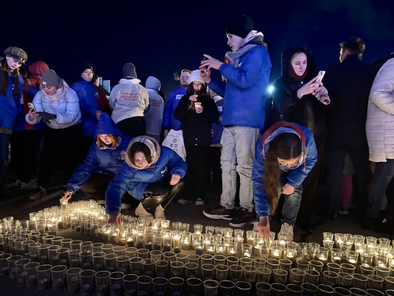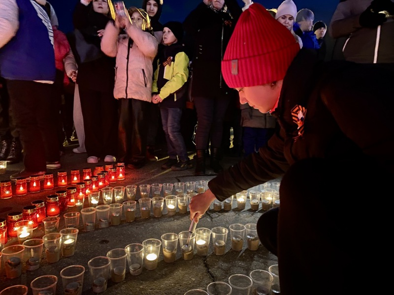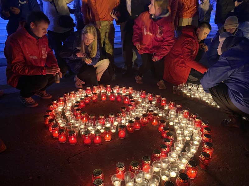 Из 5 тысяч лампад и свечей волонтеры выложили силуэт Ордена Великой Отечественной войны, дату и год Победы - 9 мая 1945 года, с георгиевской лентой.