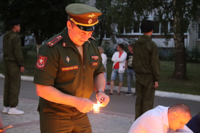 В завершение мероприятия волонтеры победы и кадеты выложили из свечей огненую инсталяцию.