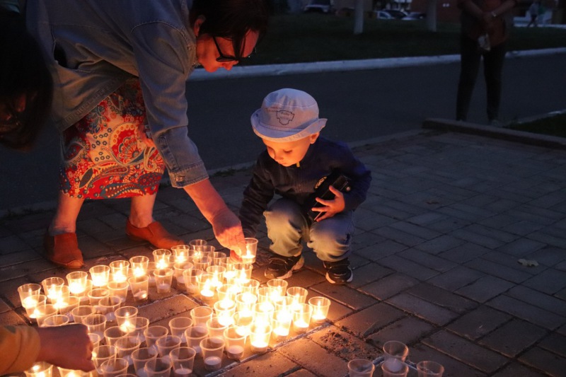 После минуты молчания многочисленные участники акции поставили к мемориалу Вечного огня горящие свечи - символ скорби об ушедших героях, чей бессмертный подвиг никогда не будет забыт.