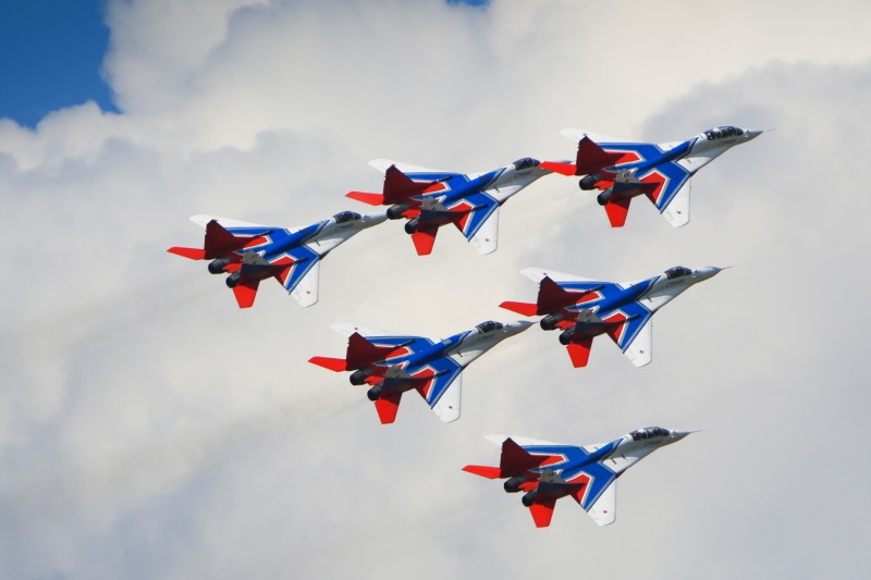 Мы увидим удивительные по синхронности элементы в небе на предельно малых интервалах между самолётами, включая взлёт и посадку. Шесть истребителей МиГ-29 пронесутся в небе на скорости более 900 км в час. В летную программу включены сложнейшие фигуры высшего пилотажа. Будут проходы в различных строях, пеленги, комплекс фигур, петли, полупетли, косые петли, бочки. При выполнении элементов от членов команды требуется максимальная сосредоточенность и полное взаимопонимание, без этого выполнить фигуры невозможно. Расстояние между самолетами в отдельных случаях будет достигать меньше метра.
