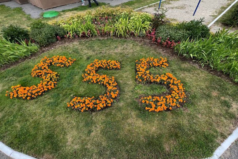 Во дворе дома №30 по улице Новогородская, что находится в МКР "Новый город". Управляющая компания посадила более 300 цветов, выложенных в грядки из трех цифр 5.Композиция посвящена грядущему 555-летию города. Неподдельное восхищение вызывает работа, проведенная работниками филиал МНТК