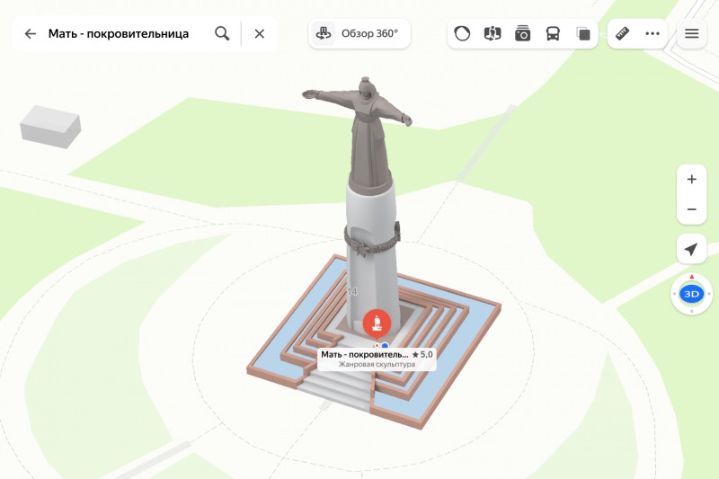 Чтобы увидеть трёхмерную модель, достаточно найти достопримечательность на карте и приблизить её. Рассмотреть объект можно не только сверху, но и со стороны. В веб-версии Карт для этого нужно нажать кнопку 3D, а в мобильном приложении — провести двумя пальцами вверх по экрану смартфона. Таким же образом можно вращать модель, изучая её с разных ракурсов.