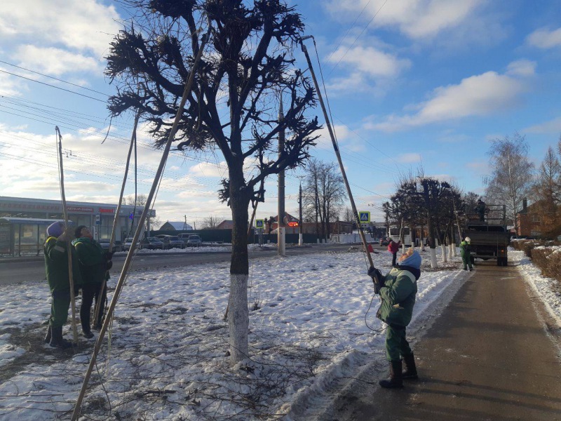 Продолжилась и формовочная обрезка деревьев. Работа прошла на улицах Ашмарина, 2-й технический переулок, Московский проспект и Заводская.