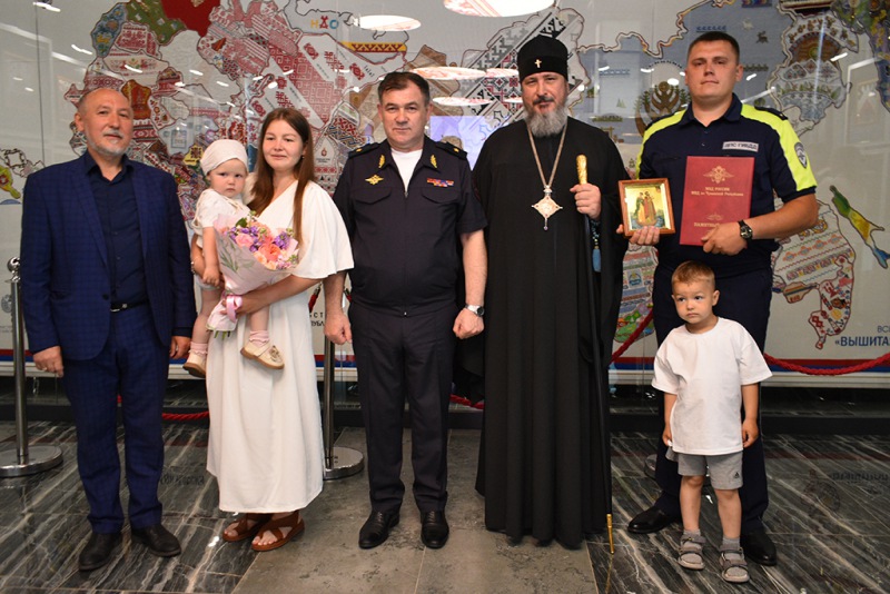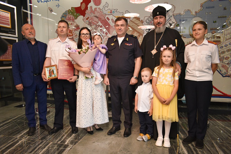 В Чебоксарах в Музее вышитой карты России состоялось торжественное мероприятие по чествованию четырех семей сотрудников органов внутренних дел, посвященное Дню семьи, любви и верности. С этим светлым и добрым праздником супругов поздравили министр внутренних дел по Чувашской Республике генерал-майор полиции Сергей Кондрашов, представители Общественного совета при Министерстве митрополит Чебоксарский и Чувашский Савватий, председатель Попечительского совета "Детской полицейской академии" Олег Степанов и директор Чувашского национального музея Ирина Меньшикова. Они вручили им приветственные адреса, иконы святых Петра и Февронии – покровителей семьи и цветы.