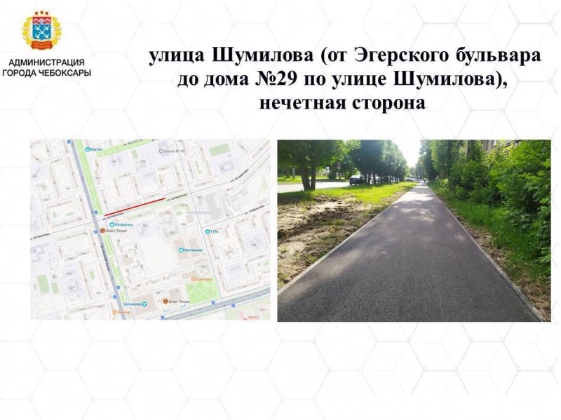 К середине лета за счёт бюджетных средств уже выполнен ремонт девяти тротуаров суммарной длиной около 3,5 километра. Бюджетом г. Чебоксары на 2025 год по муниципальной программе «Развитие транспортной системы города Чебоксары» предусмотрено 30 млн. руб. на ремонт тротуаров вдоль дорог.
