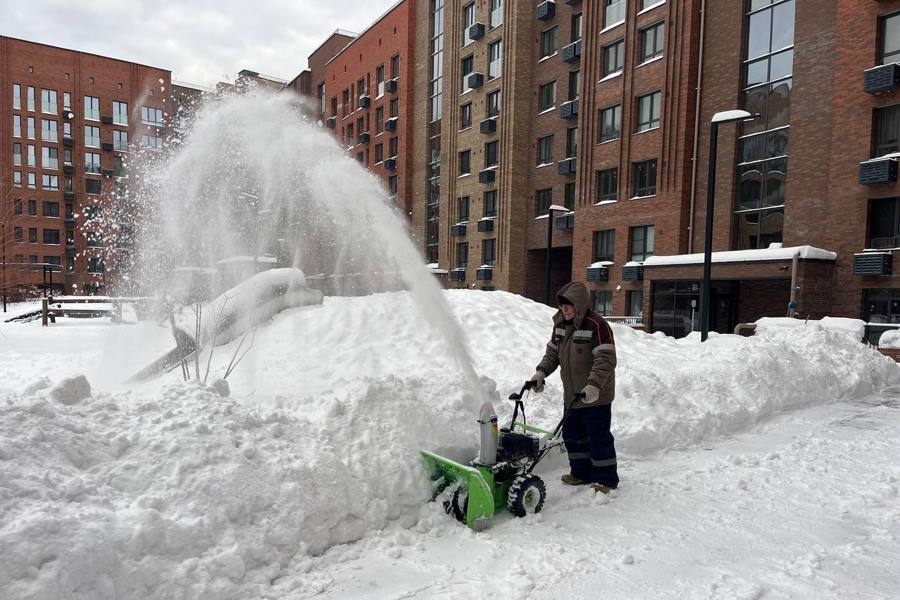 Активными темпами продолжается уборка снега в Калининском районе. Засветло на внутриквартальные и дворовые территории многоквартирных домов выходят специальная техника, рабочие по комплексному обслуживанию домов, которые расчищают подъезды, тротуары и, где это возможно, участки между припаркованными автомобилями.
