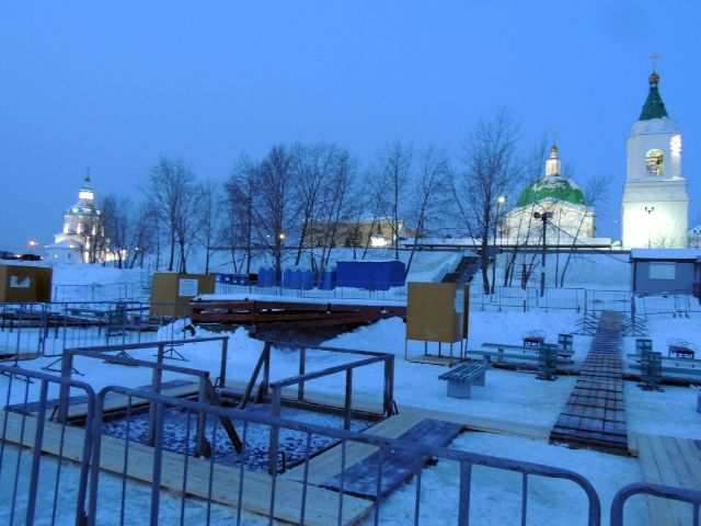 Силами городского хозяйства в Чебоксарах для совершения обряда крещения и очищения у Свято-Троицкого православного мужского монастыря, на р.Волга подготовлено четыре проруби-купели. Смонтированы деревянные трапы на спуске к купелям, установлены кабины для переодевания и скамейки. Территория проведения обряда огорожена, вплоть до 24 января здесь будут дежурить бригады ОАО «Инженерная защита».