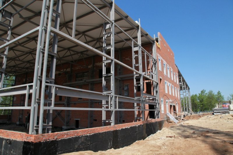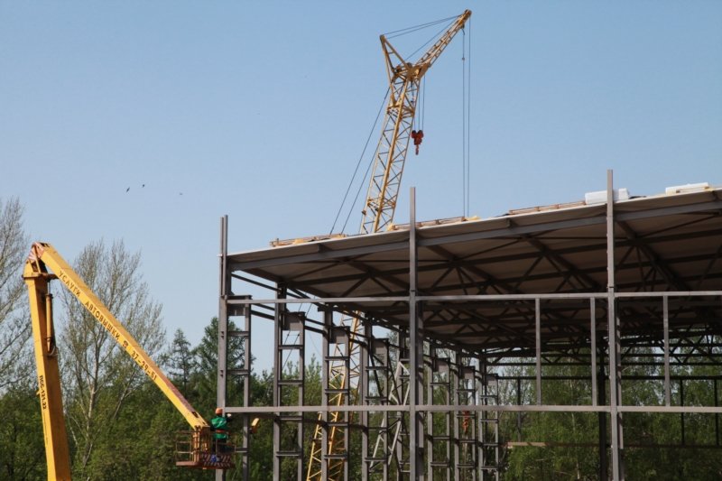 По устройству стен, покрытия и кровли административной части, спортзала и бассейнов ФОК все строительные материалы завезены на объект.