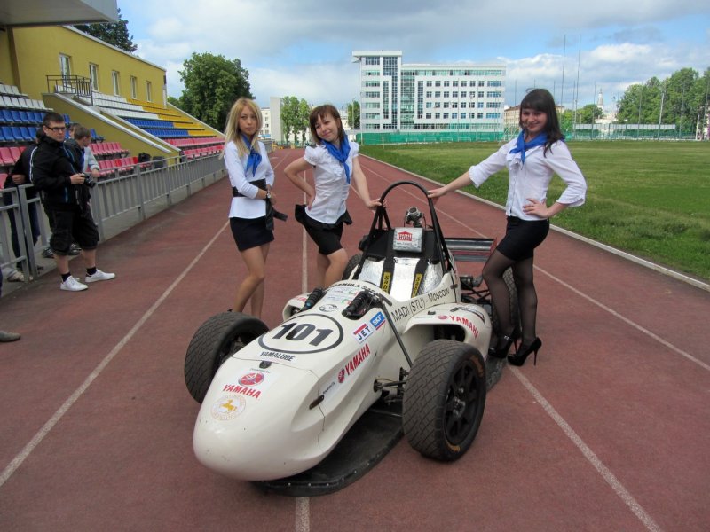 В отличие от болидов Формулы 1, студенческий гоночный кар выглядит поменьше и потеснее, но ревет и рассекает трассу также внушительно. Весит машина 255кг при габаритах 2720/1300/1144мм. Двигатель Yamaha PZ50 позволяет студенческому болиду разгоняться до 100 км за 3,7 сек.