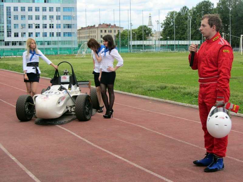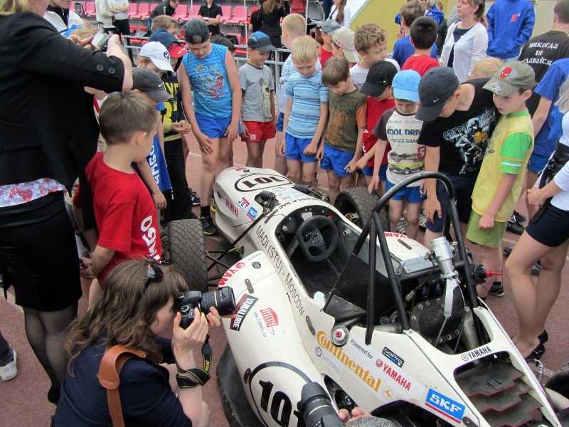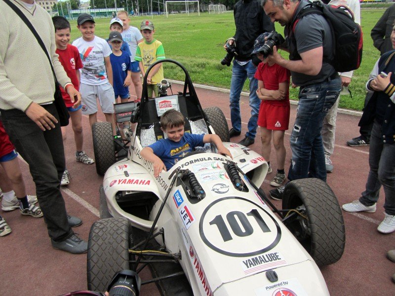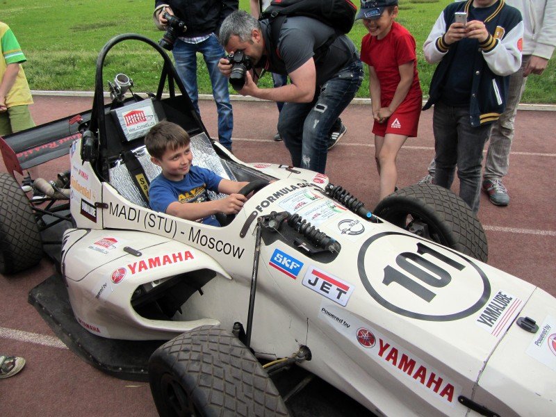 Перед тем как предстать пред журналистами, болид пронесся по стадиону. Затем состоялась пресс-конференция с пилотом болида Владиславом Крутовым и представителем команды Формула Студент МАДИ, вслед за которой всем желающим дали возможность залезть в болид и ненадолго почувствовать себя Шумахером. Машину облепили учащиеся расположенной рядом со стадионом президентской гимназии. Благо, сегодня у детей была возможность потрогать настоящий, пусть и не профессиональный, гоночный болид.