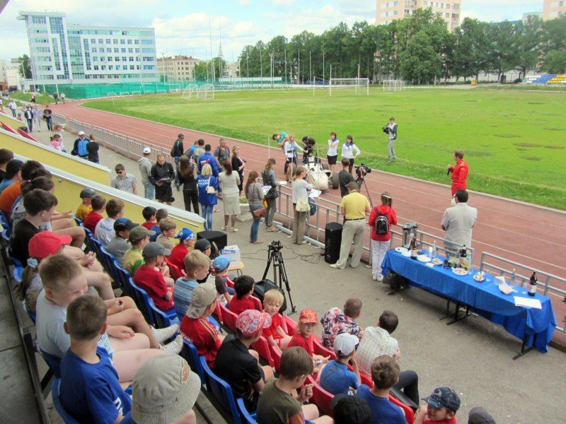 Не смотря на прохладный сильный ветер, время от времени усугубляемый дождем, на стадионе собралось довольно много журналистов, детей ближайшей школы и всех, неравнодушных к быстрым автомобилям.