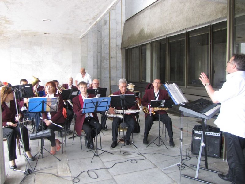 У входа в театр играл муниципальный духовой оркестр, гостям праздничного мероприятия члены Молодежного правительства при администрации Московского района г.Чебоксары вручали памятные диски с видеороликами о районе.