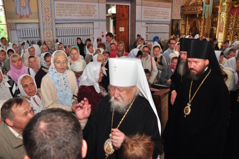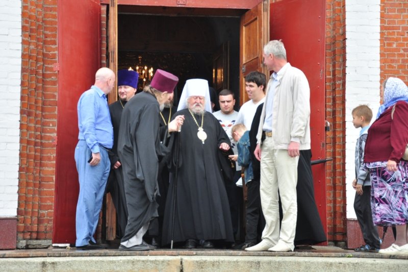 Из-за проливного дождя Молебен провели в храме, который возглавил владыка Варнава. Окончилось богослужение обращением владыки к пришедшим в храм.