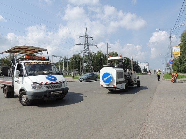 На дорогах Чебоксар ведется работа по нанесению разметки термопластиком