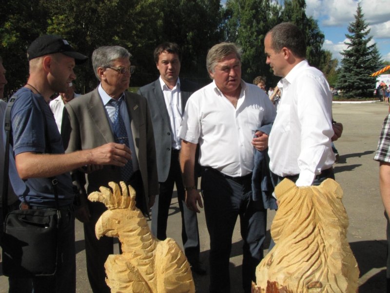 Как сказано в пресс-релизе Администрации Московского района г. Чебоксары, в рамках празднования Дня города мастеров по дереву, участников состязания, а также всех посетителей парка поприветствовал четырехкратный олимпийский чемпион, одиннадцатикратный чемпион мира, выдающийся биатлонист Александр Тихонов.