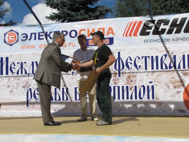 Затем Александр Иванович вручил сертификаты победителям блиц-турнира – виртуозам резьбы бензопилой, которые в течение 40 минут на глазах многочисленных зрителей выпилили уникальные фигуры. 1 место и денежный приз в размере 3 тысяч рублей получил Кошкин Андрей Геннадьевич (г. Чебоксары), 2 место и денежный приз – 2 тысячи рублей – присуждено Иванову Александру Валерьевичу (п. Кугеси, Чувашия), Замкнул тройку лидеров Аранский Денис Петрович (г. Иванцевичи, Беларусь). Ему вручен сертификат и денежный приз в размере 1 тысяча рублей.