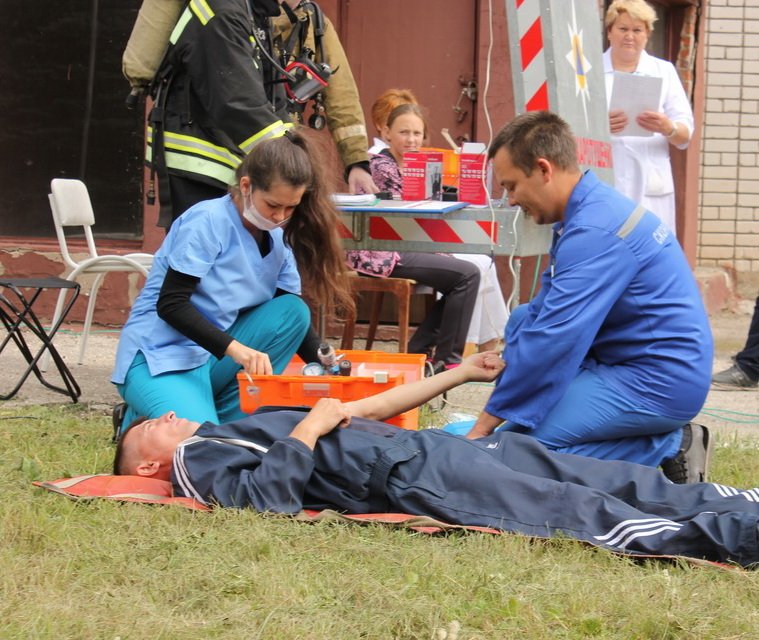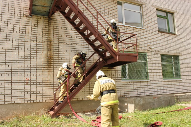 По сценарию учений, на третьем этаже возникло сильное задымление. На разведку помещений отправилось одно звено газодымозащитной службы. В актовом зале клинической больницы пожарные нашли двух пострадавших детей, попавших в огненную ловушку. Спасатели, надев на них спасательные маски, вывели из задымленного помещения. Параллельно с поиском пострадавших шла боевая работа пожарных по локализации и ликвидации условного возгорания.