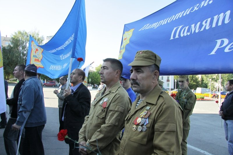 В сопровождении духового оркестра торжественным маршем они прошлись по ул. И.Франко до мемориального комплекса «Победа». На митинг на площадке перед ДК им. Хузангая собрались представители регионального отделения организации «Инвалиды войны», ветераны локальных конфликтов, жители города.