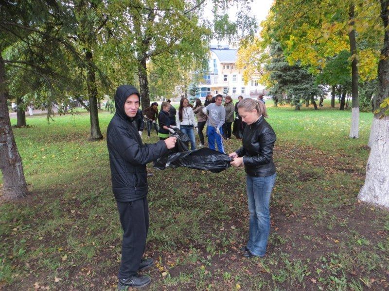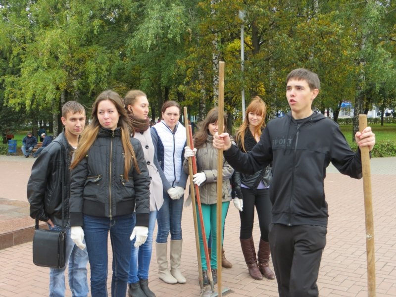 120 волонтеров Чебоксарского экономико-технологического колледжа вышли сегодня на уборку Сквера им. Чапаева