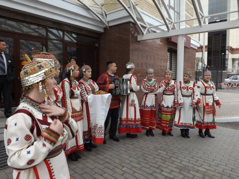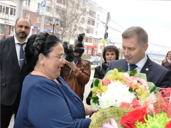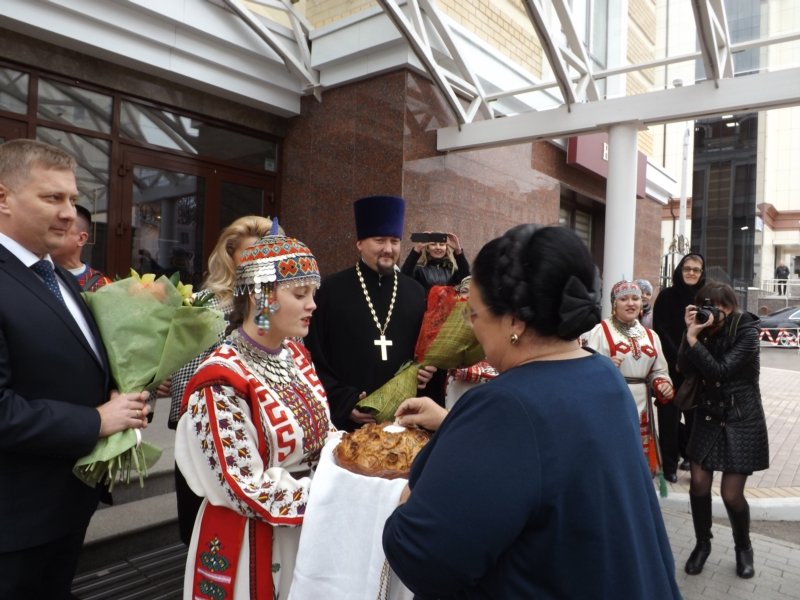 Почетную гостью встретили хлебом-солью и народной песней в исполнении фольклорного ансамбля "Уяв". Высокую гостью встретили Министр культуры, по делам национальностей и архивного дела Чувашской Республики Ефимов Вадим Петрович, заместитель главы администрации города Чебоксары по социальным вопросам Салаева Алла Леонидовна и протоирей Николай Иванов – секретарь Чебоксарско -Чувашского епархиального управления.