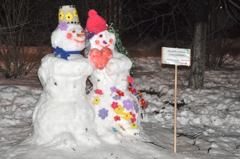 1 место- команда СОШ № 17 с фигурой «Влюбленные снеговики»;