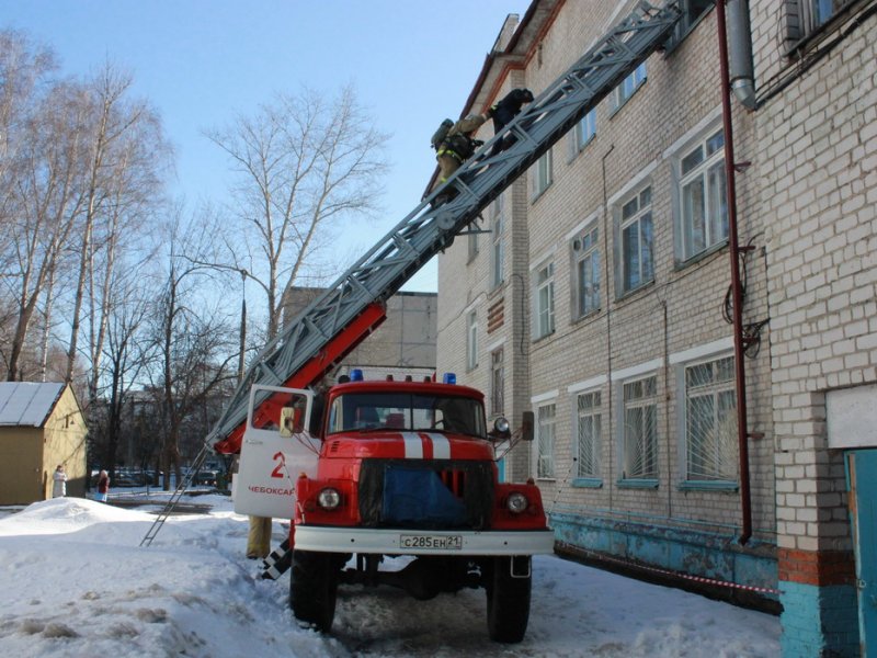 Сегодня в здании «Городского клинического центра» Юго-западном районе Чебоксар прошли показные пожарно-тактические учения. По замыслу тренировки, в актовом зале на третьем этаже лечебного учреждения произошло короткое замыкание электропроводки, вызвавшее пожар. Загорелась отделка помещения и находившаяся внутри мебель.