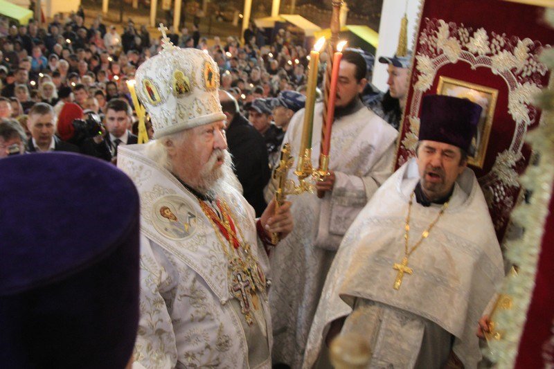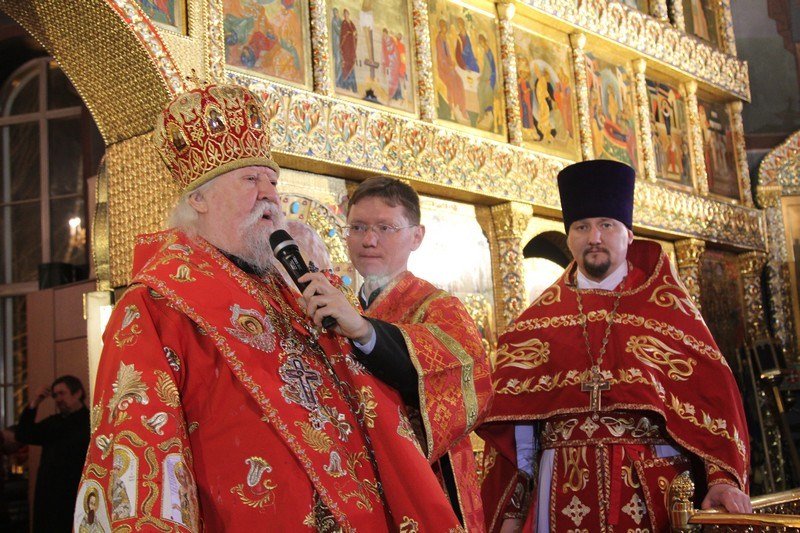 Затем началась праздничная Божественная Литургия. После чтения Пасхального евангельского повествования на четырех языках:греческом, славянском, русском и чувашском владыка Варнава огласил верующим Пасхальное послание Святейшего Патриарха Кирилла архипастырям, пастырям, диаконам, монашествующим и всем верным чадам Русской Православной Церкви.