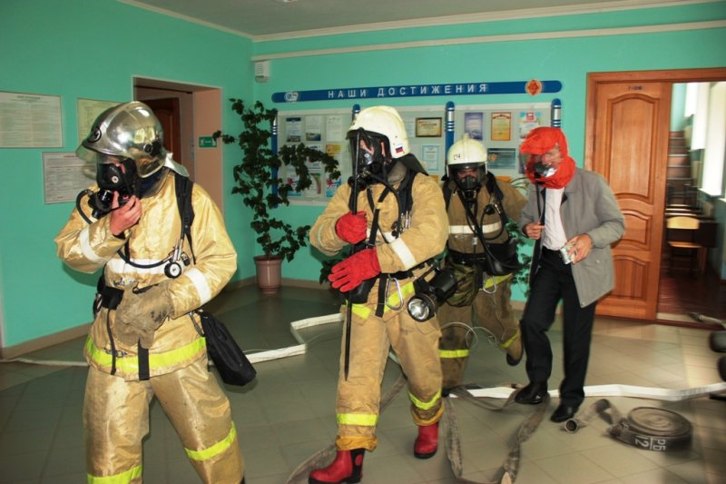 На поиски «пленников огня» срочно выдвинулись три звена газодымозащитной службы. Спасатели обследовали все кабинеты и коридоры. Людей сотрудники МЧС обнаружили на «горящем» втором этаже. Надев на них спасательные маски, пожарные вывели «пострадавших» на свежий воздух и передали медикам.