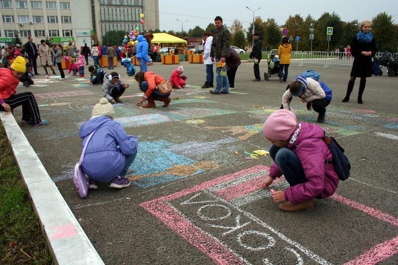 Затем у входа в ДК "Химик" начался концерт художественной самодеятельности. На площади Победы дети состязались в рисовании мелом на асфальте сюжетов о родном городе.