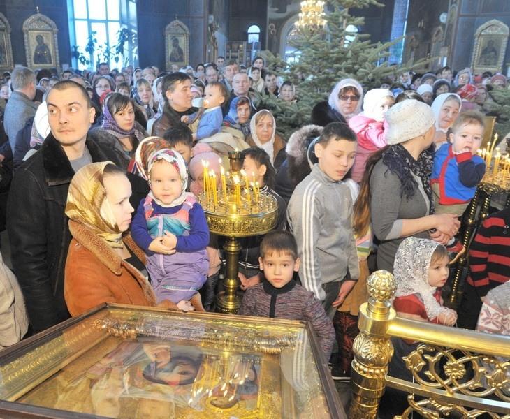 По окончании Божественной Литургии перед праздничной иконой был совершен чин славления Рождеству Христову.