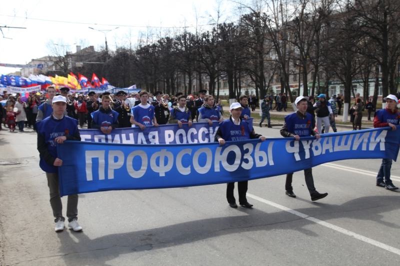 Как сказано в пресс-релизе Администрации г. Чебоксары, в праздничном шествии от сквера Чапаева, организованном партией "Единая Россия" и Чувашским республиканским объединением профсоюзов, приняли участие трудовые коллективы учреждений, предприятий, организаций столицы. Шествие завершилось театрализованным представлением на Красной площади. Со сцены горожан поздравил Глава Республики Михаил Игнатьев.