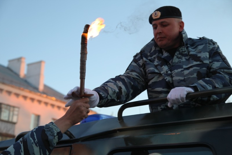 Поздним вечером 8 мая по центральным улицам Чебоксар на боевой машине "Тигр" провезли факел с частичкой Вечного огня. Зажжен он был у Монумента Славы г. Чебоксары.