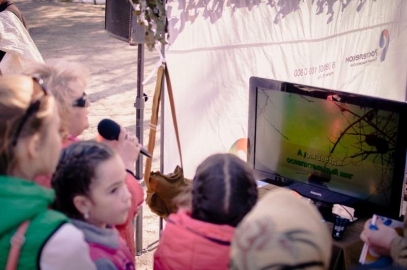 9 мая все желающие могли в режиме реального времени протестировать сервис Интерактивного ТВ «Караоке», спеть любимую военную песню и получить приз за душевное исполнение. Самой первой и, как оказалось, самой юной участницей мероприятия стала Арина Парусова, которая, со слов мамы, засыпает только под «Катюшу». Кроме «Катюши» популярностью у любителей караоке пользовались «Лизавета» и «Смуглянка». Был спрос на детские и эстрадные композиции. Молодежь выбирала фонограммы Ивана Дорна и Нюши, а совсем маленькие певцы – «33 коровы».