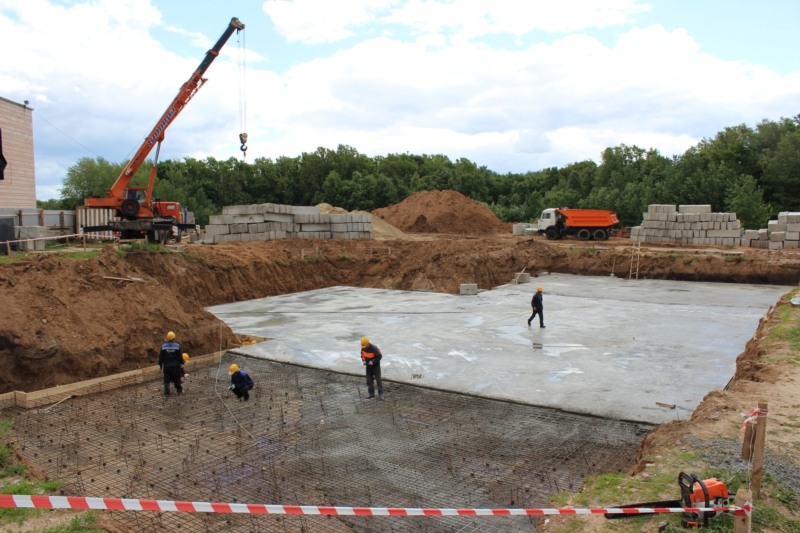 Под многофункциональный центр рядом со зданием ДК Тракторостроителей подготовлена стройплощадка, установлено ее ограждение, организованы подъездные пути, выполнен подстилающий слой и армирование подушки котлована, сегодня идут работы по заливке монолитного фундамента.