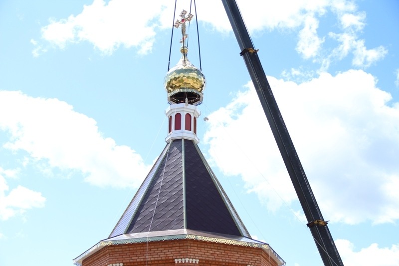 Чин освящения совершил настоятель Собора протоирей Илия Карлинов. После чего купол вместе с крестом при помощи подъемного крана стали поднимать на колокольню. Установка купола является "ювелирной" и точной работой. Кран работал точно, все было рассчитано по миллиметрам. Отметим, что купол был изготовлен в Чебоксарах из высокопрочных материалов, поэтому красота и первозданный вид сохранится на долгие года.