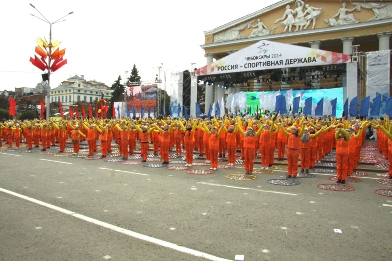 В этот день город Чебоксары стал спортивной столицей России, где открылся пятый юбилейный Международный форум "Россия – спортивная держава". Свыше 3 тысяч гостей из более чем 20 стран мира стали участниками этого мероприятия. Была подготовлена насыщенная трехдневная деловая программа, культурные и спортивные площадки, выставки и экспозиции. Во время масштабного театрализованного представления 700 девушек в стилизованных костюмах с "зеркальными" обручами и 96 знаменосцев выстраивали букву "ГТО" и флаг Российской Федерации длиной в 24 м, перестраивались в "кружки", "вертушки", "корзиночки". На сцене выступал сводный хор из 300 человек.
