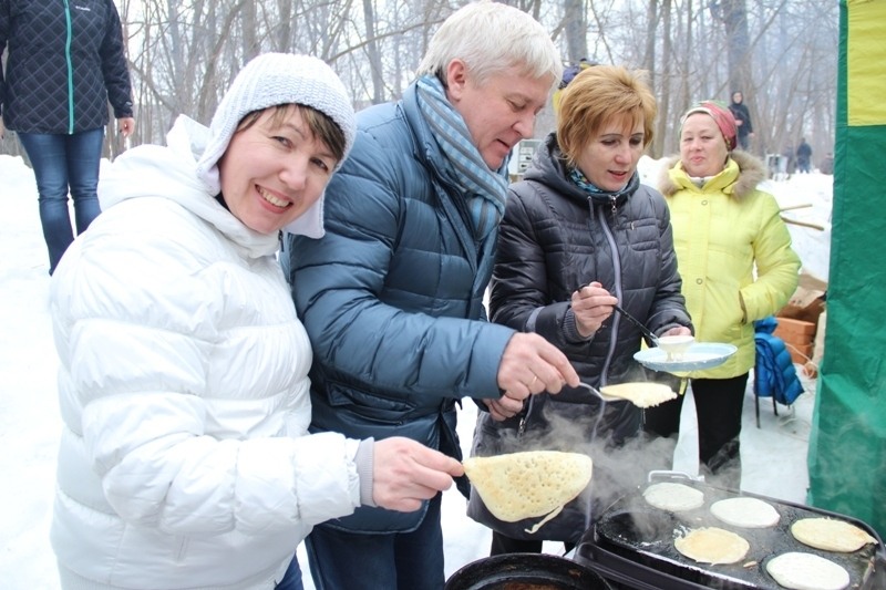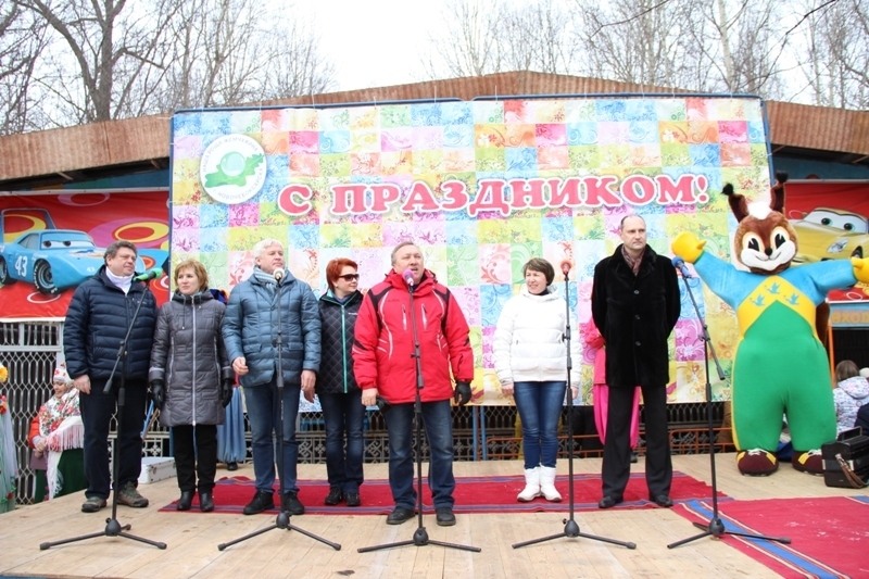 Депутаты Государственного Совета Чувашской Республики Сергей Михеев и Владимир Михайлов, депутаты Новочебоксарского городского Собрания депутатов, глава города Олег Матвеев, глава администрации Олег Бирюков и сотрудники городской администрации поздравили всех присутствующих с Масленицей, пожелали крепкого здоровья и любви, а также угостили горожан блинами, приготовленными собственноручно.