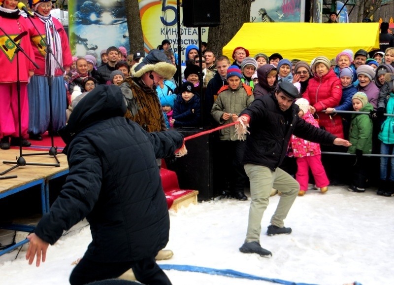 С 10.00 часов вниманию горожан была представлена развлекательная программа с множеством конкурсов, среди которых - бег в мешках, перетягивание каната, соревнования для детей и многое другое. Новочебоксарцы с удовольствием принимали участие в потешных забавах, проверяли свою силу и ловкость, соревновались, пели частушки и танцевали. Собравшихся развлекали задорные скоморохи, клоуны и ряженные. Детишки с удовольствием катались на лошадях и пони, "бананах" и снегоходах.