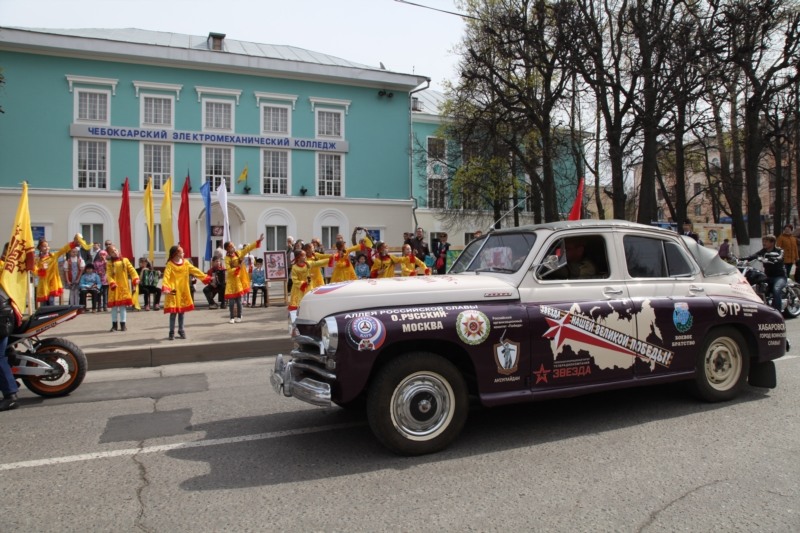 В начале колонны двигались 7 мотоциклов мотоклуба "Ночные Волки", ГАЗ-М-20 "Победа". В числе первых проходило руководство республики и города: Глава Чувашии Михаил Игнатьев, глава города Чебоксары Леонид Черкесов, глава администрации города Чебоксары Алексей Ладыков. Звучали песни, развевались флаги, ведущие и творческие коллективы приветствовали участников на десяти интерактивных площадках.