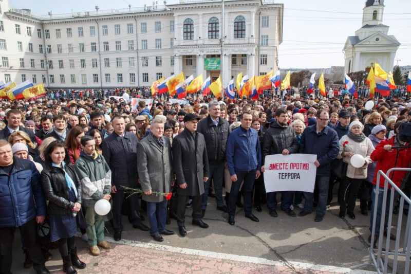Глава Чувашии Михаил Игнатьев, члены регионального правительства, представители общественных объединений и трудовых коллективов, школьники и студенты выразили поддержку пострадавшим, а также призвали к объединению усилий в борьбе против террора.