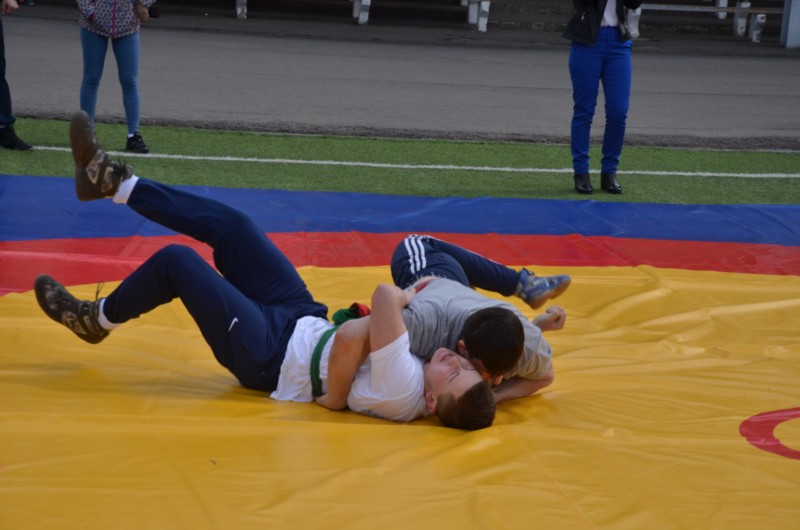 Гости праздника с удовольствием посмотрели спортивные состязания (татаро-башкирскую борьбу "Кер?ш", борьбу ветеранов борцовского движения "Кγр?ш" Верхнеуслонского муниципального района Республики Татарстан и Чувашской Республики, гиревые состязания, бой на бревне с мешками, армрестлинг, показательные выступления спортсменов) и даже поучаствовали в традиционных татарских спортивных играх (разбивание горшка и перетягивание каната).