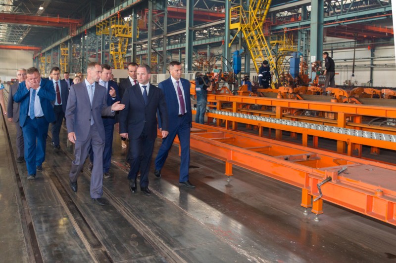 Центральным пунктом визита стало знакомство с деятельностью универсального сборочно-сварочного корпуса (УССК) – роботизированного производства, построенного с участием фирмы "NIPPON SHARYO" (Япония). Исполнительный директор ЗАО "Промтрактор-Вагон" Владимир Муханов пояснил, что производственные мощности УССК отличаются возможностью оперативно производить грузовые вагоны с различными габаритными параметрами и быстрой переналадкой оборудования (в течение двух суток).