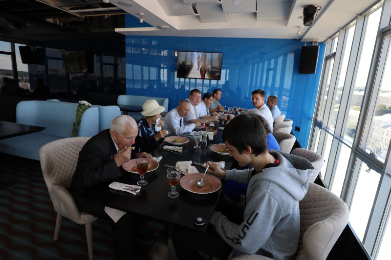 Вкусная пища для Казанских гостей - это неотъемлемая часть нашего путешествия, поэтому ветераны смогли в полной мере насладиться обедами с шикарным видом в панорамном ресторане CARLSSON, который расположен на 11 этаже делового центра "Республика". По всему периметру ресторана открывается шикарный вид на Чебоксарский Залив, ветераны были восхищены!