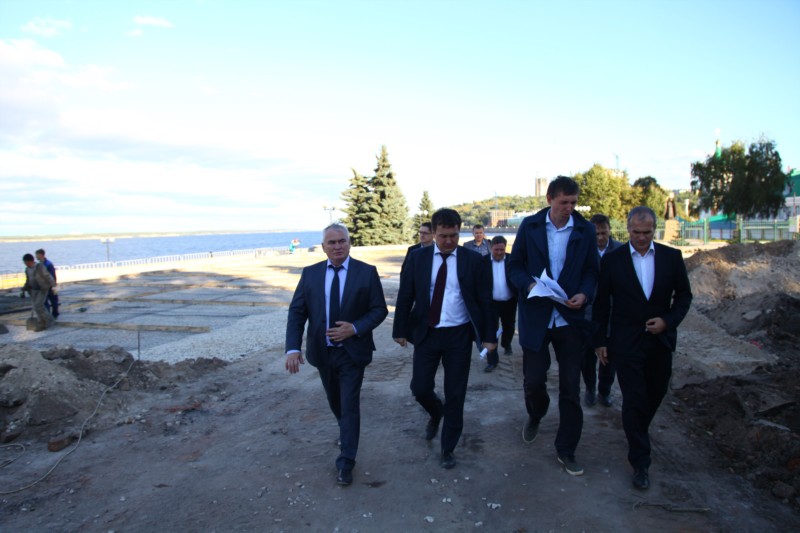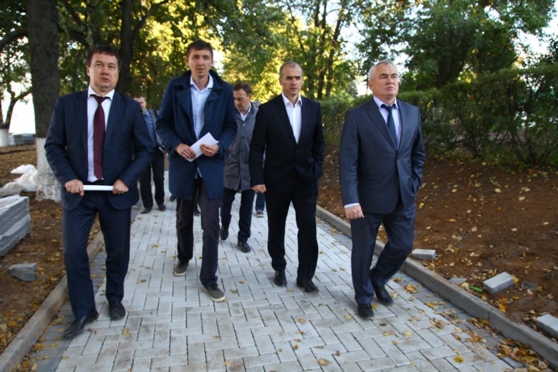 Алексей Ладыков вместе с рабочей группой проинспектировал ход строительства, где в настоящее время начались подготовительные работы под устройство площадки из гранитного покрытия, выполнен демонтаж балясин вдоль "аллеи любви" и уложено 250 кв.м брусчатого покрытия на пешеходных дорожках.