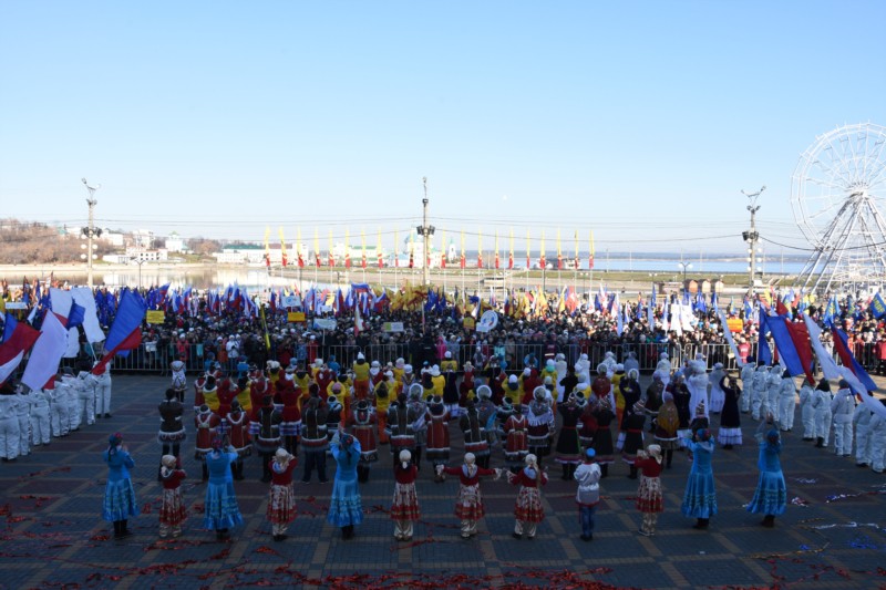 Митинг продолжился праздничной программой: национальные творческие коллективы выступили с яркими концертными номерами.