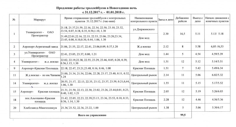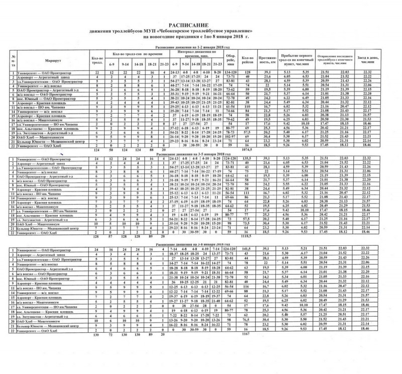 Кроме того, утверждено расписание движения троллейбусов с 1 по 8 января 2018 года.